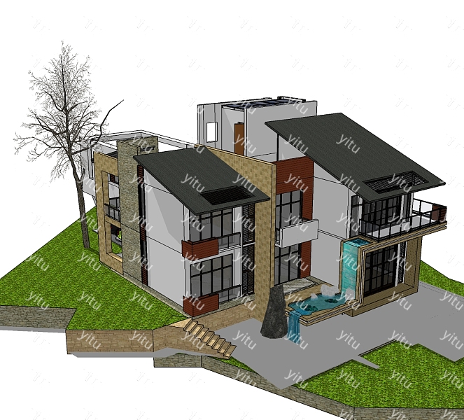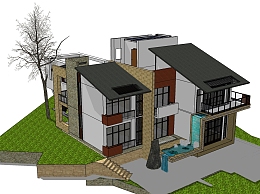 • 现代简约风格别墅草图大师模型,别墅SU模型下载