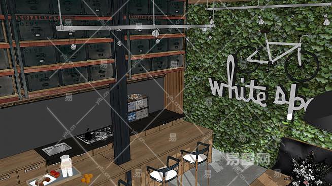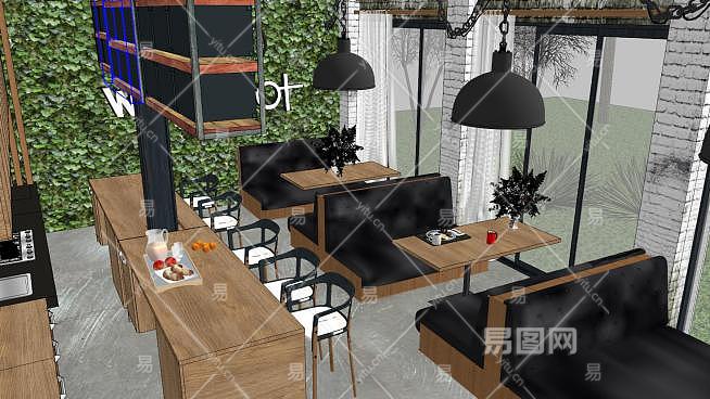 工业LOFT咖啡屋前台SU模型下载_sketchup草图大师SKP模型