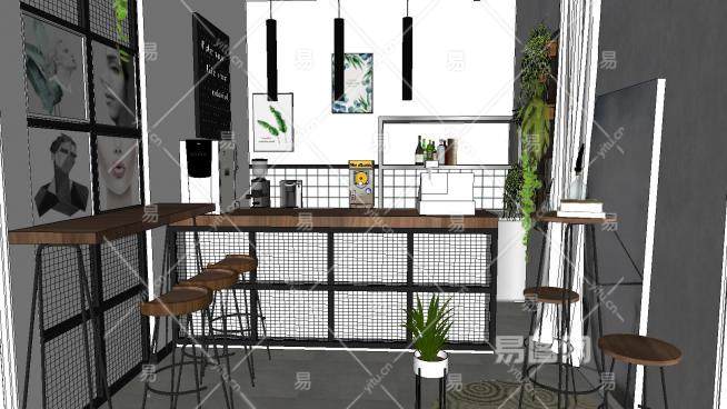 北欧咖啡厅装修SU模型下载_sketchup草图大师SKP模型