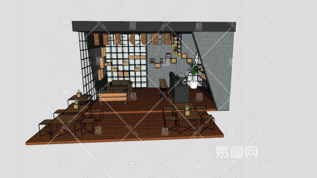 多维数据集现代咖啡厅SU模型下载_sketchup草图大师SKP模型