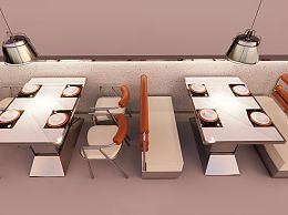 现代卡座沙发 餐桌椅 吊灯
