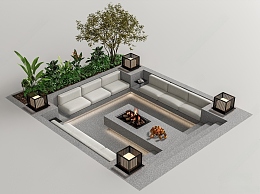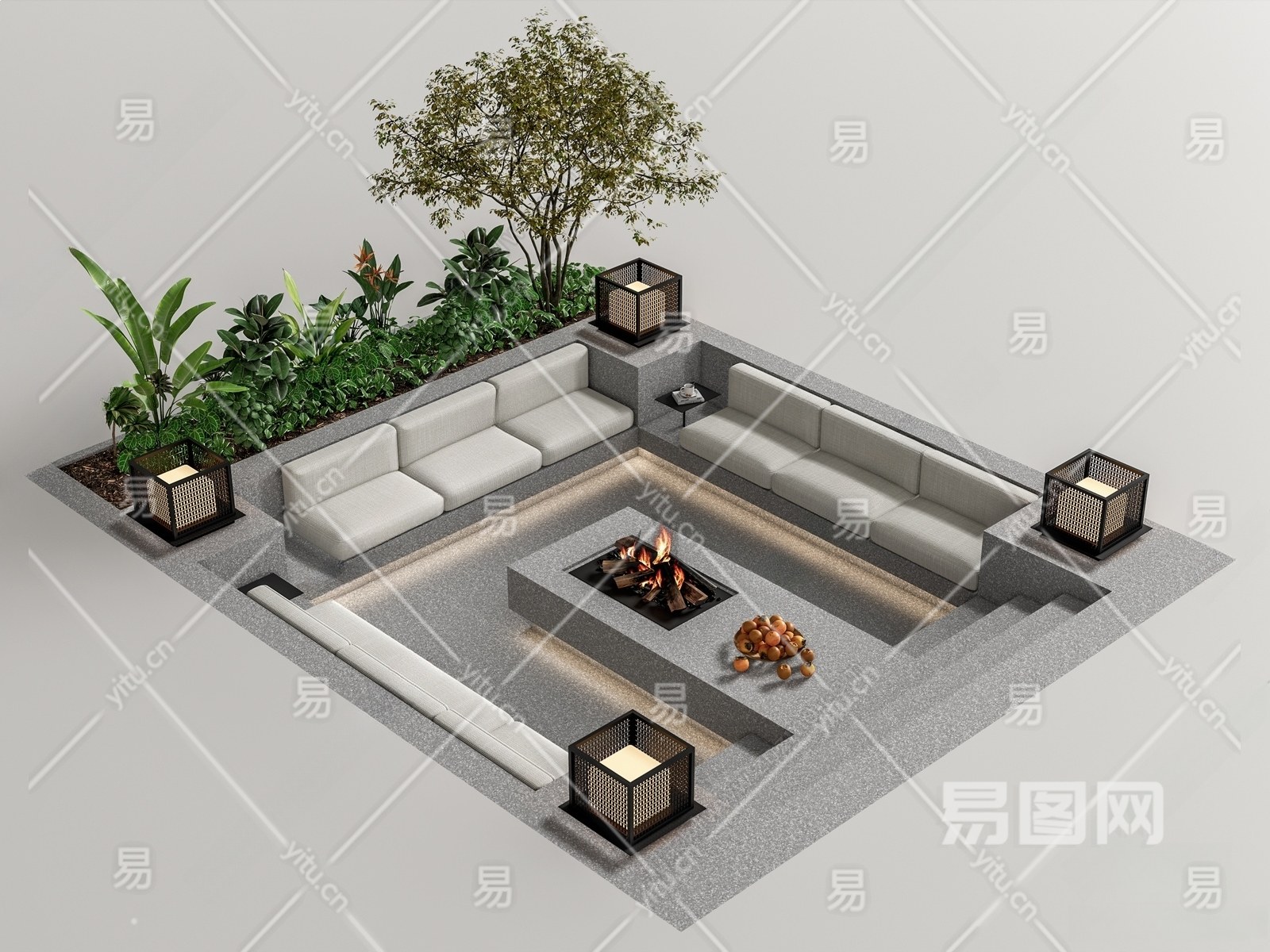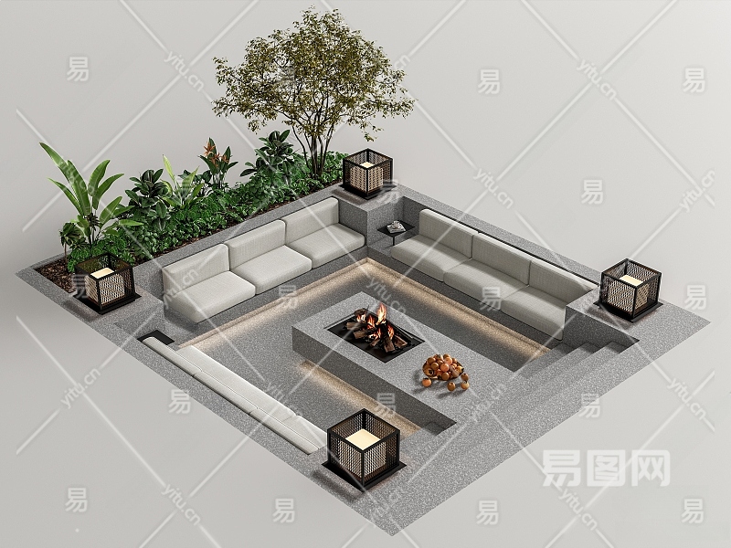 现代庭院下沉卡座沙发 户外沙发 下沉休息区 景观灯 户外灯 花箱 户外