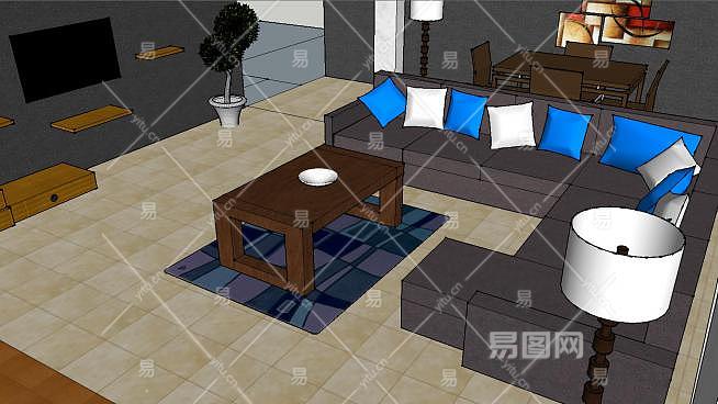 室内客厅装修SU模型下载_sketchup草图大师SKP模型