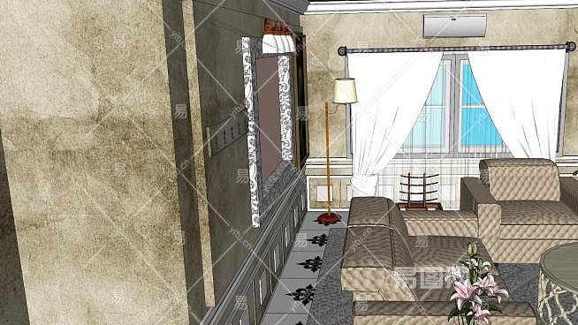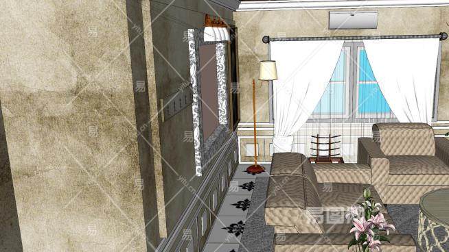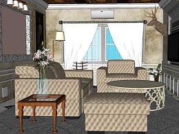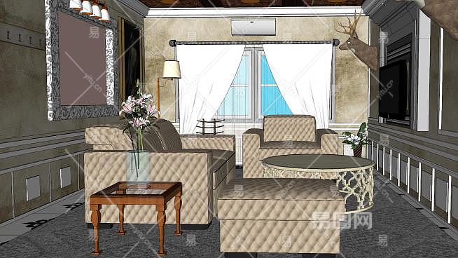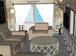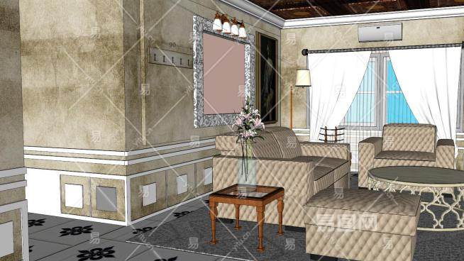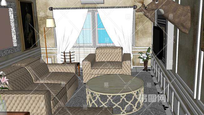 维多利亚时代客厅装修SU模型下载_sketchup草图大师SKP模型