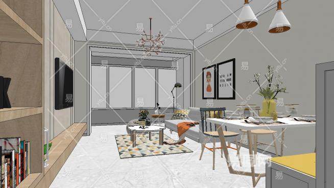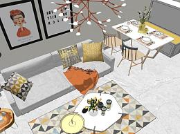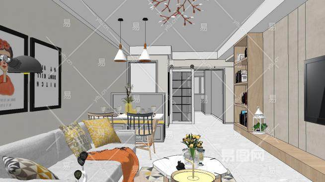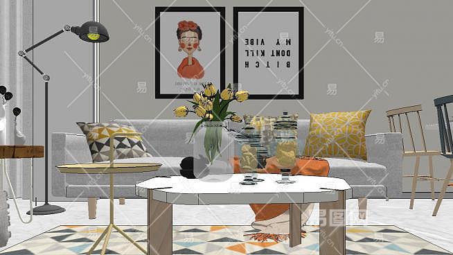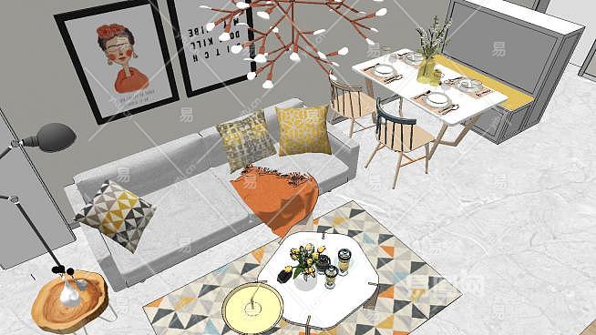 小清新北欧风格室内整体家装SU模型下载_sketchup草图大师SKP模型
