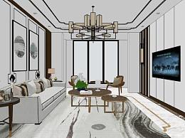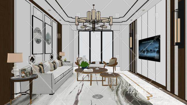新中式简约风客餐厅SU模型下载_sketchup草图大师SKP模型