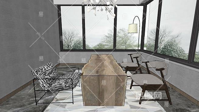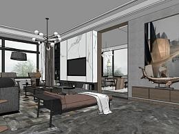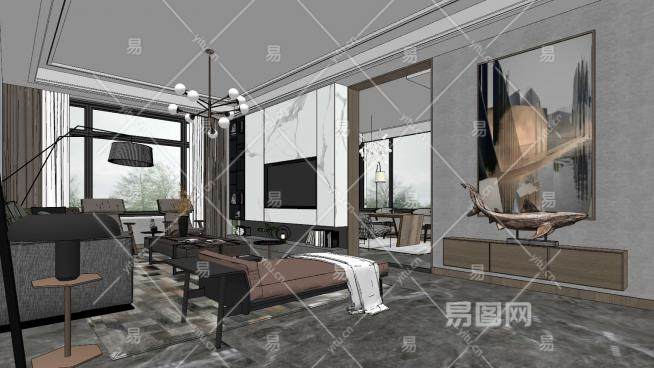现代轻奢家装客餐厅SU模型下载_sketchup草图大师SKP模型