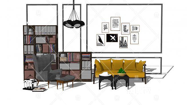 现代客厅草图大师模型下载_sketchup草图大师SKP模型