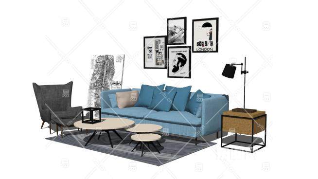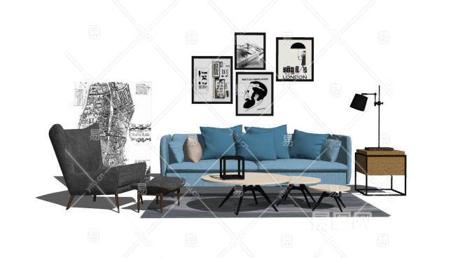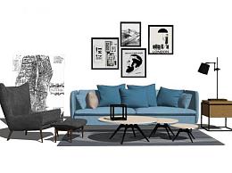 北欧沙发家具挂画软装SU模型下载_sketchup草图大师SKP模型