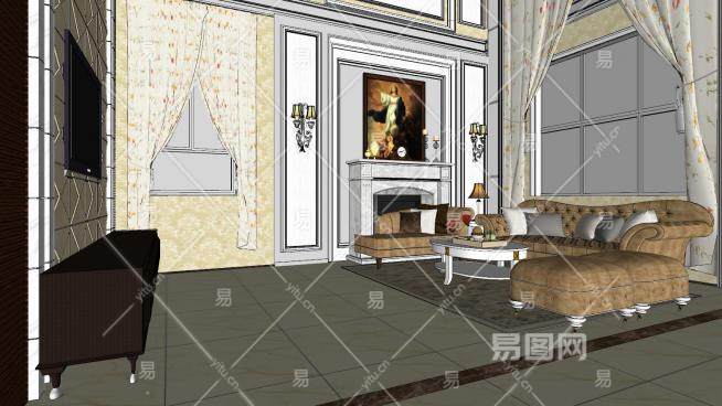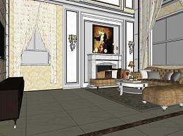 欧式奢华客厅装修SU模型下载_sketchup草图大师SKP模型