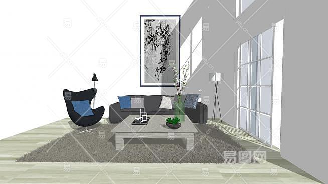 北欧客厅设计SU模型下载_sketchup草图大师SKP模型