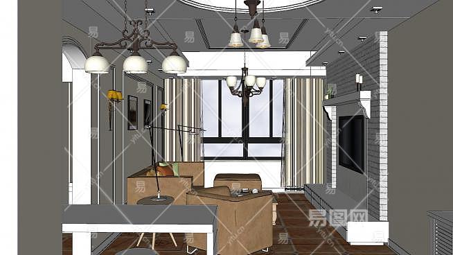 简欧客厅家装设计SU模型下载_sketchup草图大师SKP模型