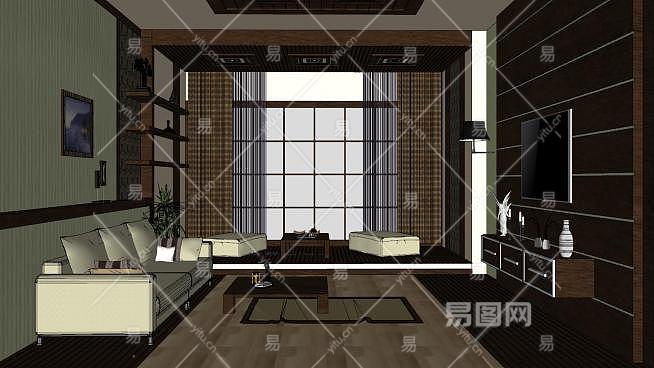 欧式客厅装修设计SU模型下载_sketchup草图大师SKP模型