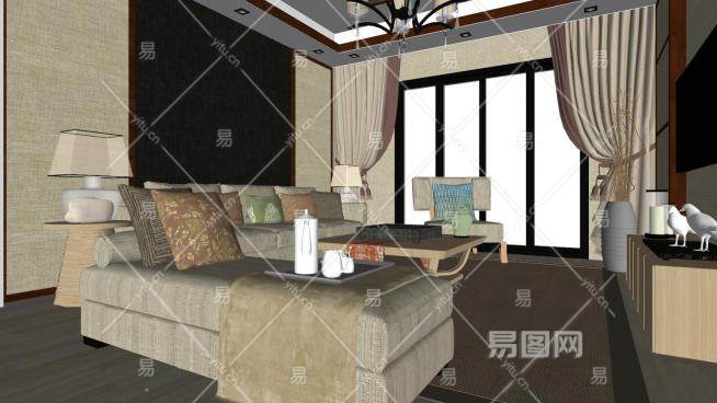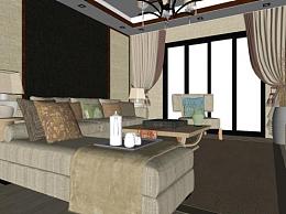 新中式客厅现代户型SU模型下载_sketchup草图大师SKP模型