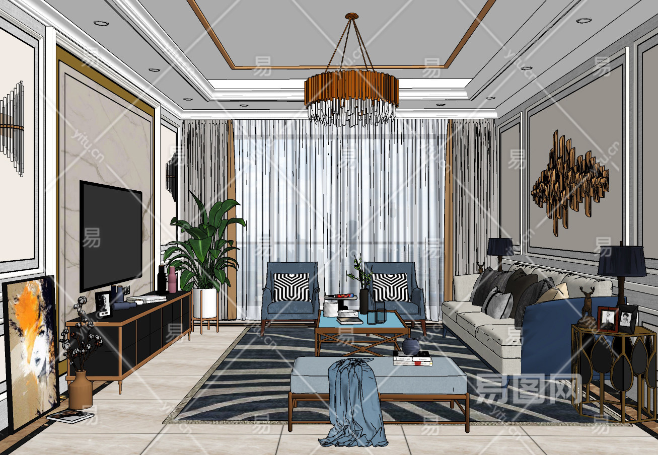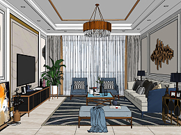 现代轻奢客厅su草图模型下载