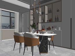 现代餐厅SU模型下载