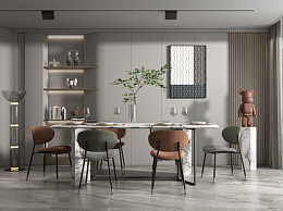 现代餐厅SU模型下载