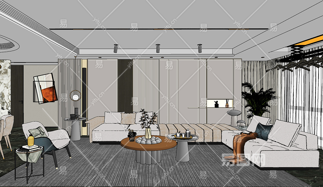 现代客厅,su草图模型下载
