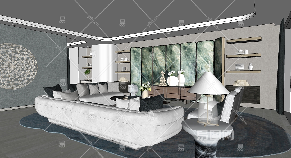 禧瑞春秋南合院 现代客厅 su草图模型下载