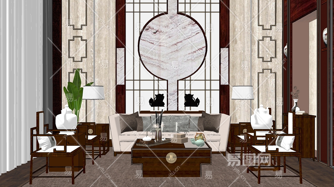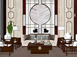 新中式别墅客厅 su草图模型下载