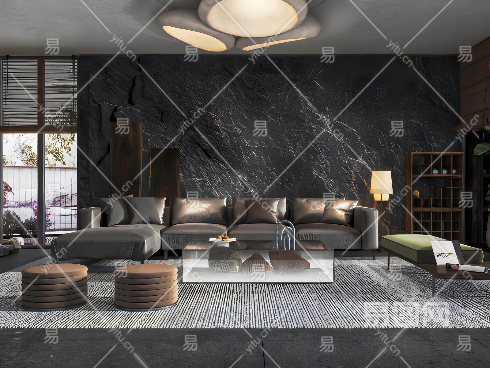现代暗黑风客厅模型
