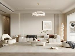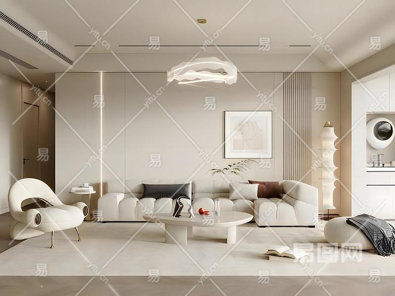 现代奶油风客厅模型