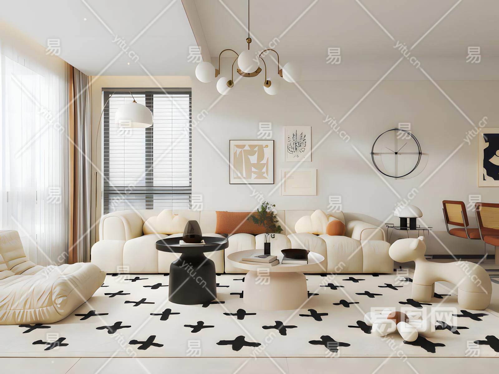 SU模型M0003739672侘寂奶油风客餐厅模型