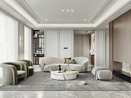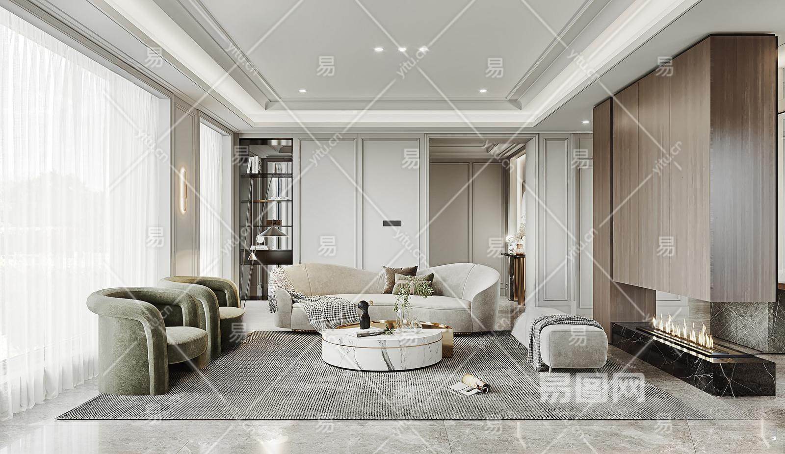 简欧客厅 沙发组合 壁灯 玄关柜 墙饰 壁炉火 落地灯