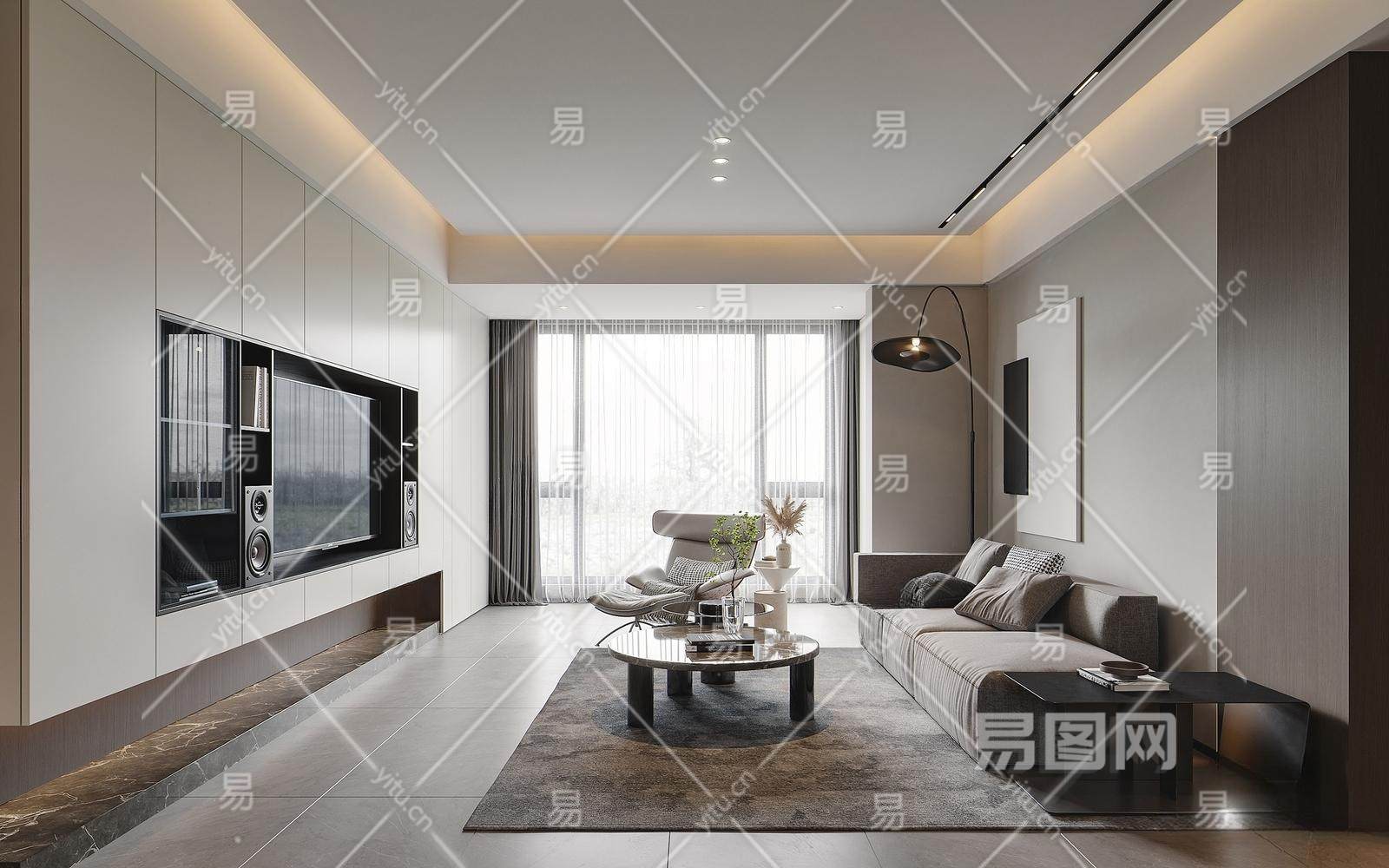 现代家居客厅 电视背景墙 沙发茶几组合