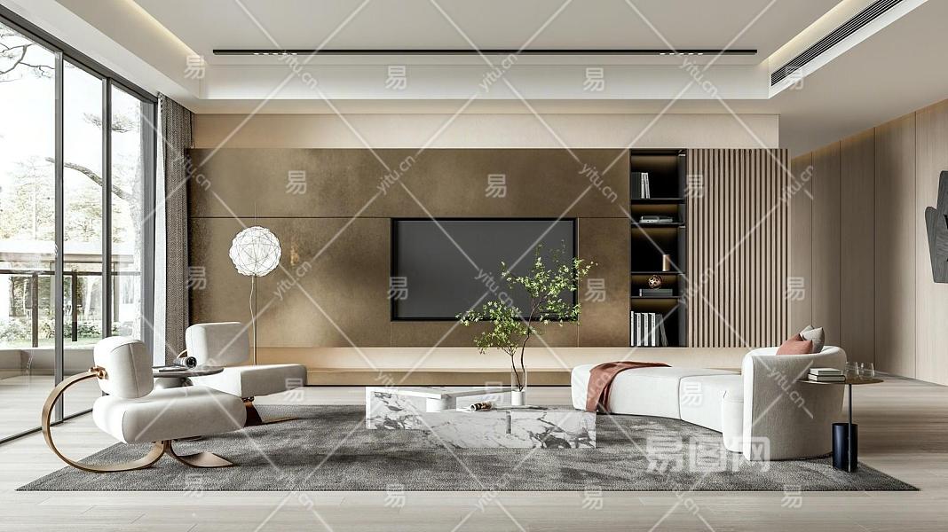 现代客厅 沙发茶几组合 电视背景墙 落地灯