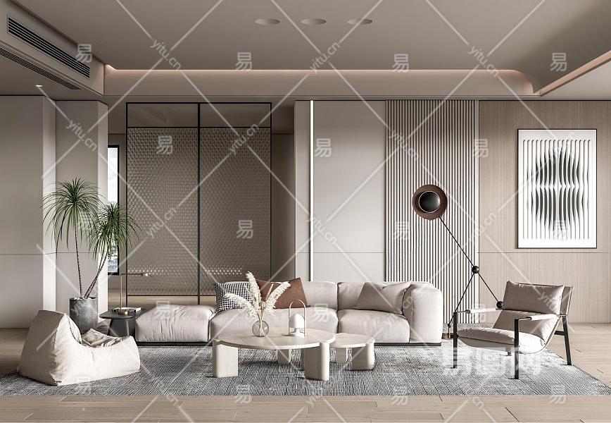 现代客厅 沙发茶几组合 懒人沙发 休闲椅 落地灯 屏风隔断