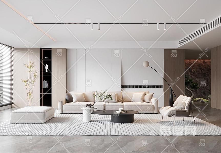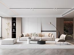 现代客厅 沙发茶几组合 落地灯 背景墙 射灯 地毯