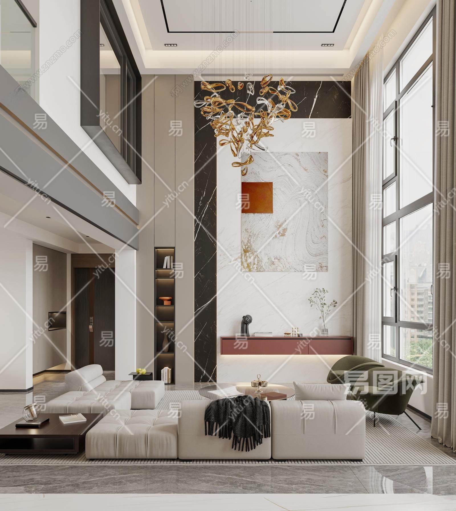 当前的位置:首页 > sketchup > sketchup模型 > 家装 > 客厅 > 现代跃层别墅客厅组合 跃层客厅 吊灯 楼梯 沙发茶几 餐桌椅 沙发背景