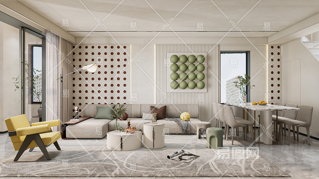 侘寂客餐厅 沙发茶几 餐桌椅 休闲椅 落地灯 饰品 摆件 墙饰