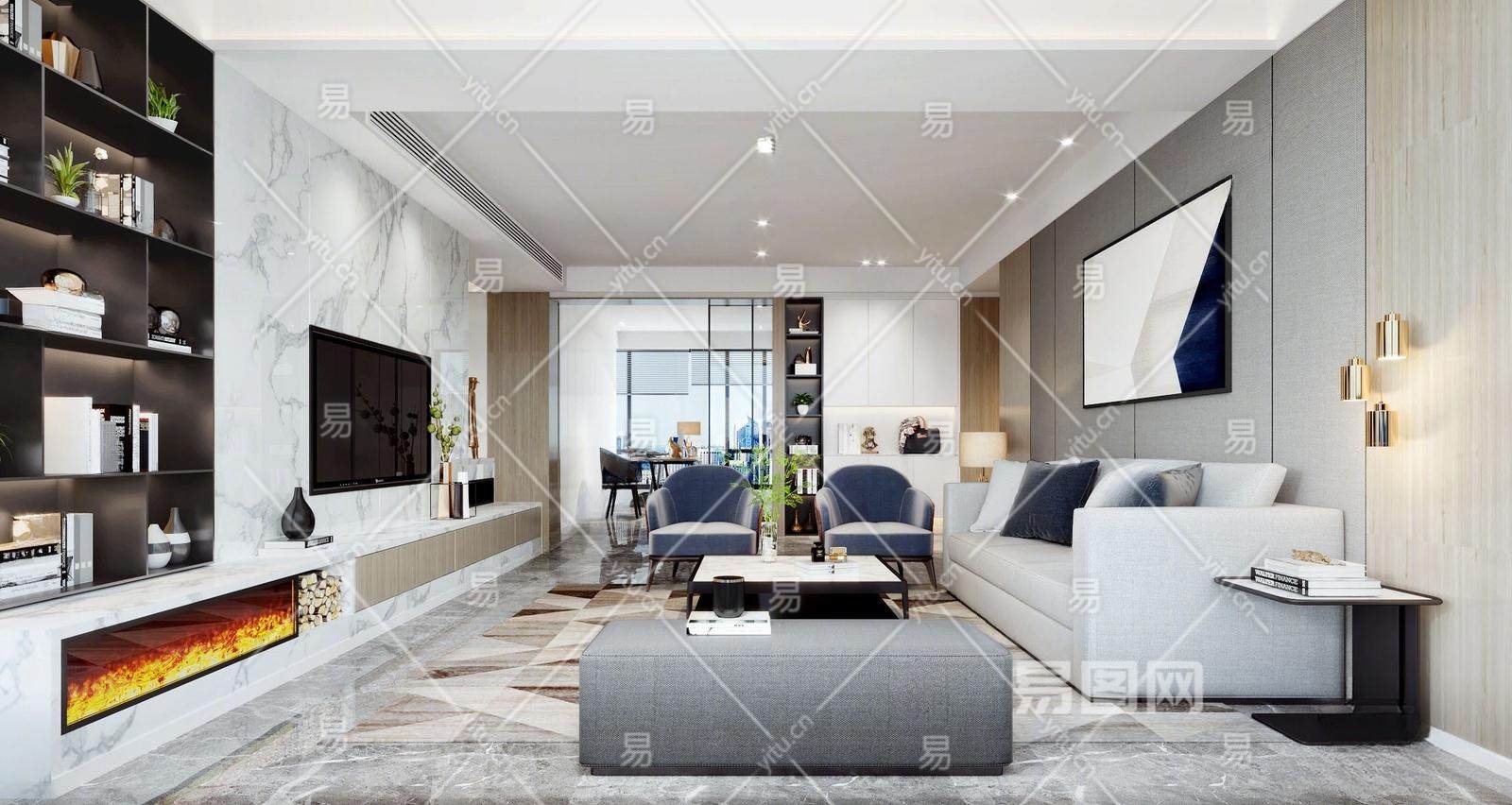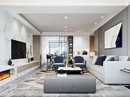 现代客餐厅 沙发组合 茶几 电视机 电视柜 沙发背景 餐桌椅 玄关 餐厅