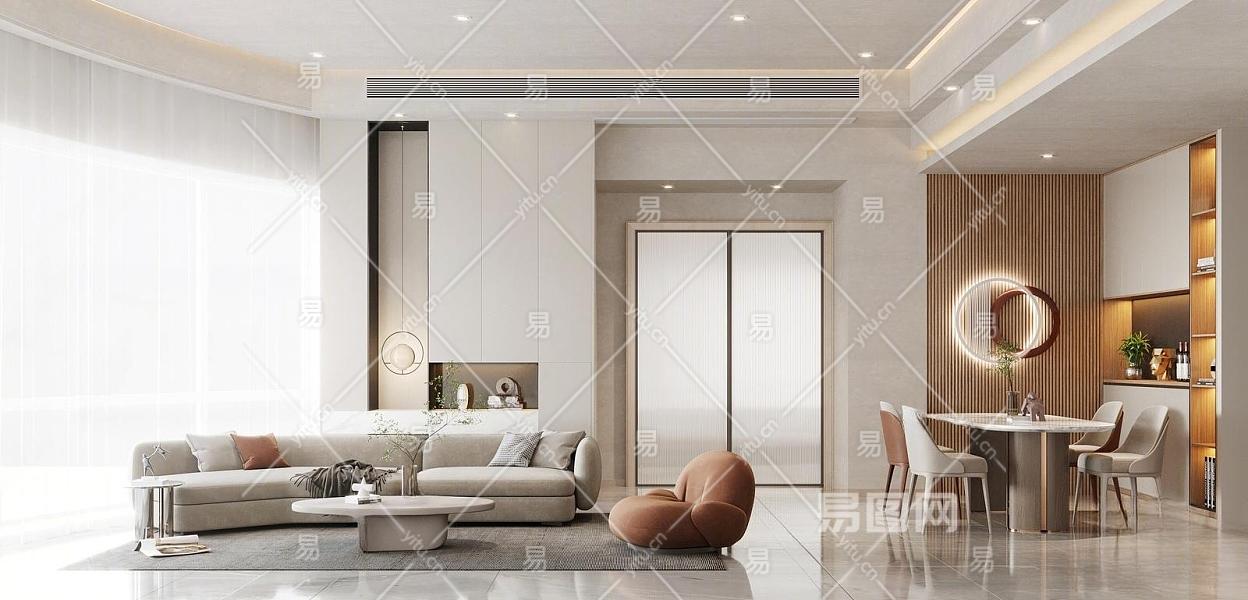 现代简约客餐厅 布艺沙发 懒人沙发 餐桌组合 饰品摆设 茶几组合 酒柜