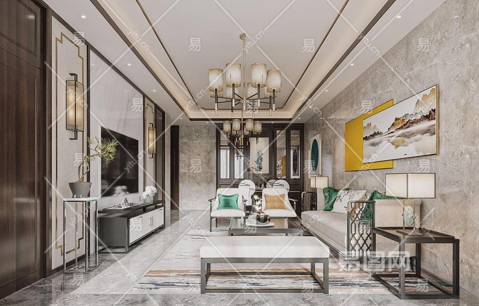 当前的位置:首页 > sketchup > sketchup模型 > 家装 > 客厅 > 新中式家居客餐厅 沙发 茶几 电视柜 酒柜 餐桌椅 灯饰