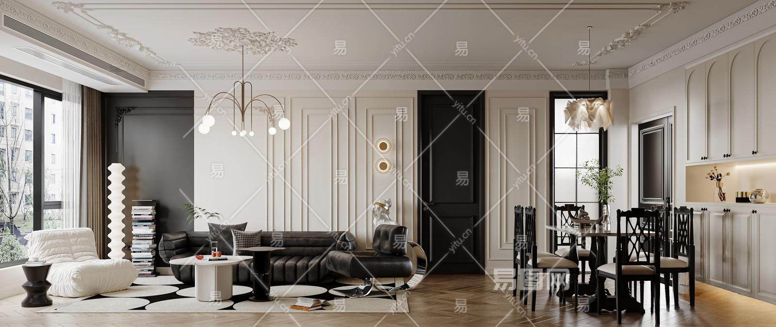 当前的位置:首页 > sketchup > sketchup模型 > 家装 > 客厅 > 现代中古风客餐厅 沙发背景墙 餐厅 餐桌 无主灯 沙发组 厨房