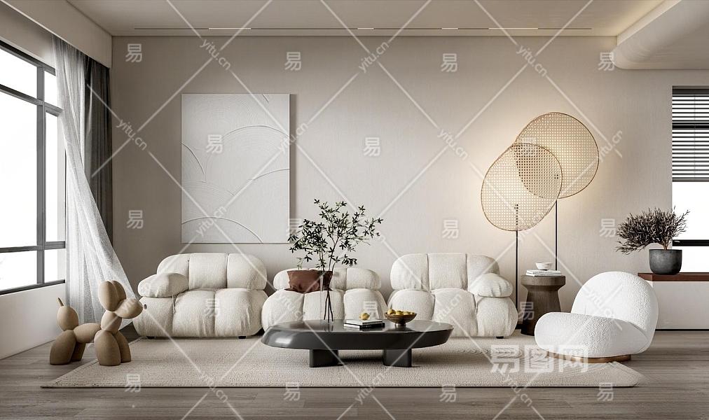 CAMALEONDA侘寂风客厅 沙发茶几组合 落地灯 装饰画 懒人沙发
