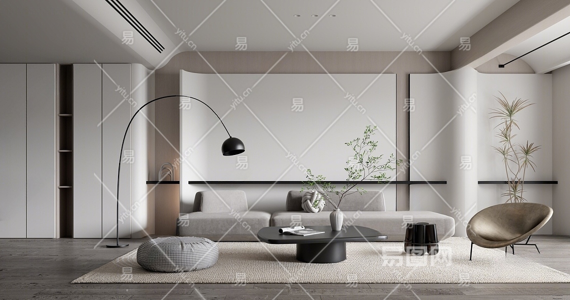 现代家居客厅 沙发茶几组合 多人沙发 休闲椅 落地灯 花瓶花艺