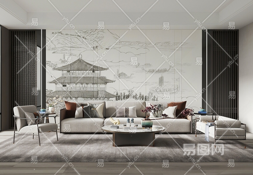 当前的位置:首页 > sketchup > sketchup模型 > 家装 > 客厅 > 新中式客餐厅沙发茶几组合