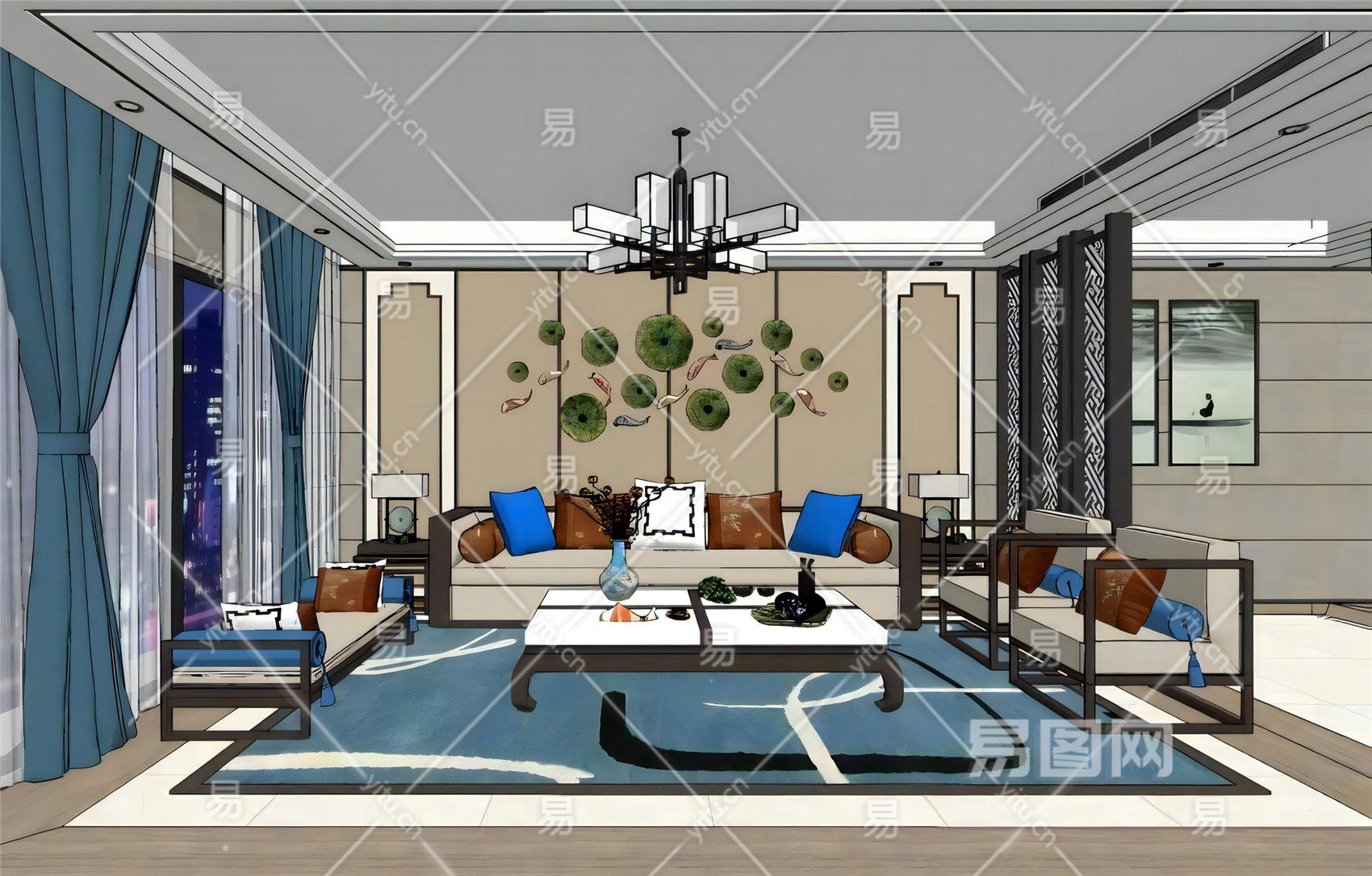 当前的位置:首页 > sketchup > sketchup模型 > 家装 > 客厅 > 新中式客餐厅沙发茶几组合