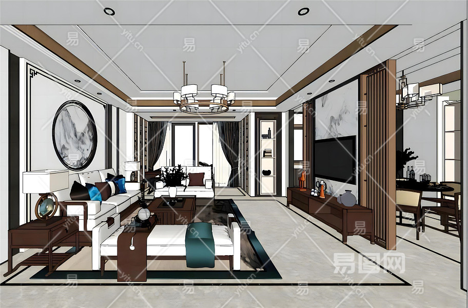 当前的位置:首页 > sketchup > sketchup模型 > 家装 > 客厅 > 新中式客餐厅沙发茶几组合