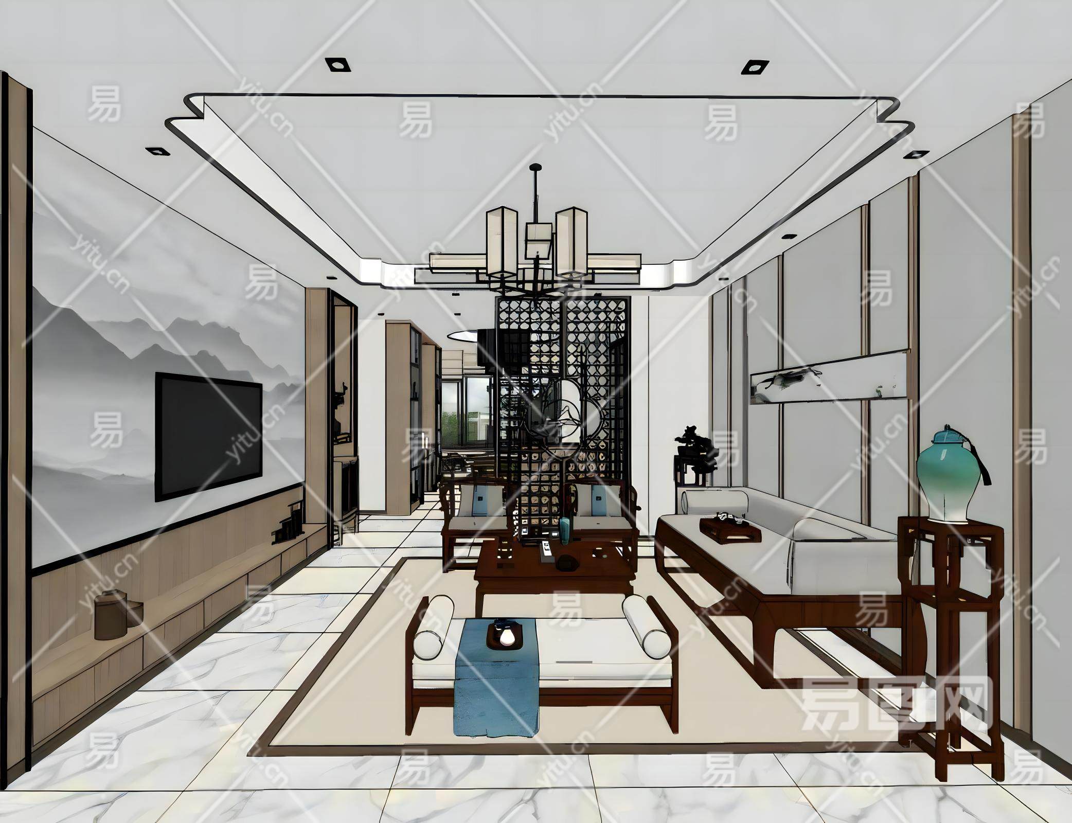 当前的位置:首页 > sketchup > sketchup模型 > 家装 > 客厅 > 新中式客餐厅沙发茶几组合