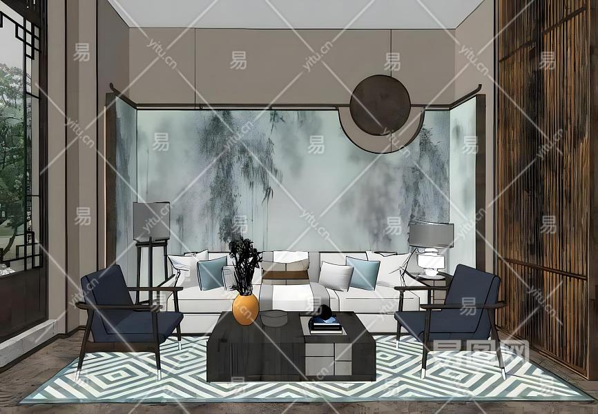 当前的位置:首页 > sketchup > sketchup模型 > 家装 > 客厅 > 新中式客餐厅沙发茶几组合