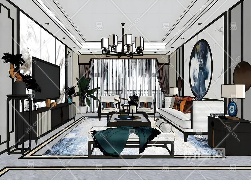 当前的位置:首页 > sketchup > sketchup模型 > 家装 > 客厅 > 新中式客餐厅沙发茶几组合