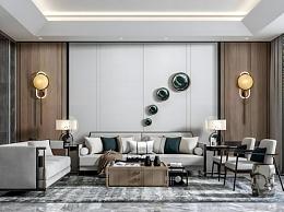 新中式客餐厅沙发茶几组合