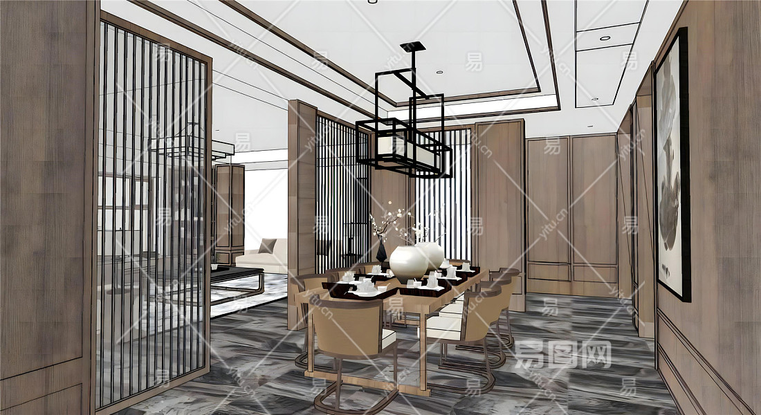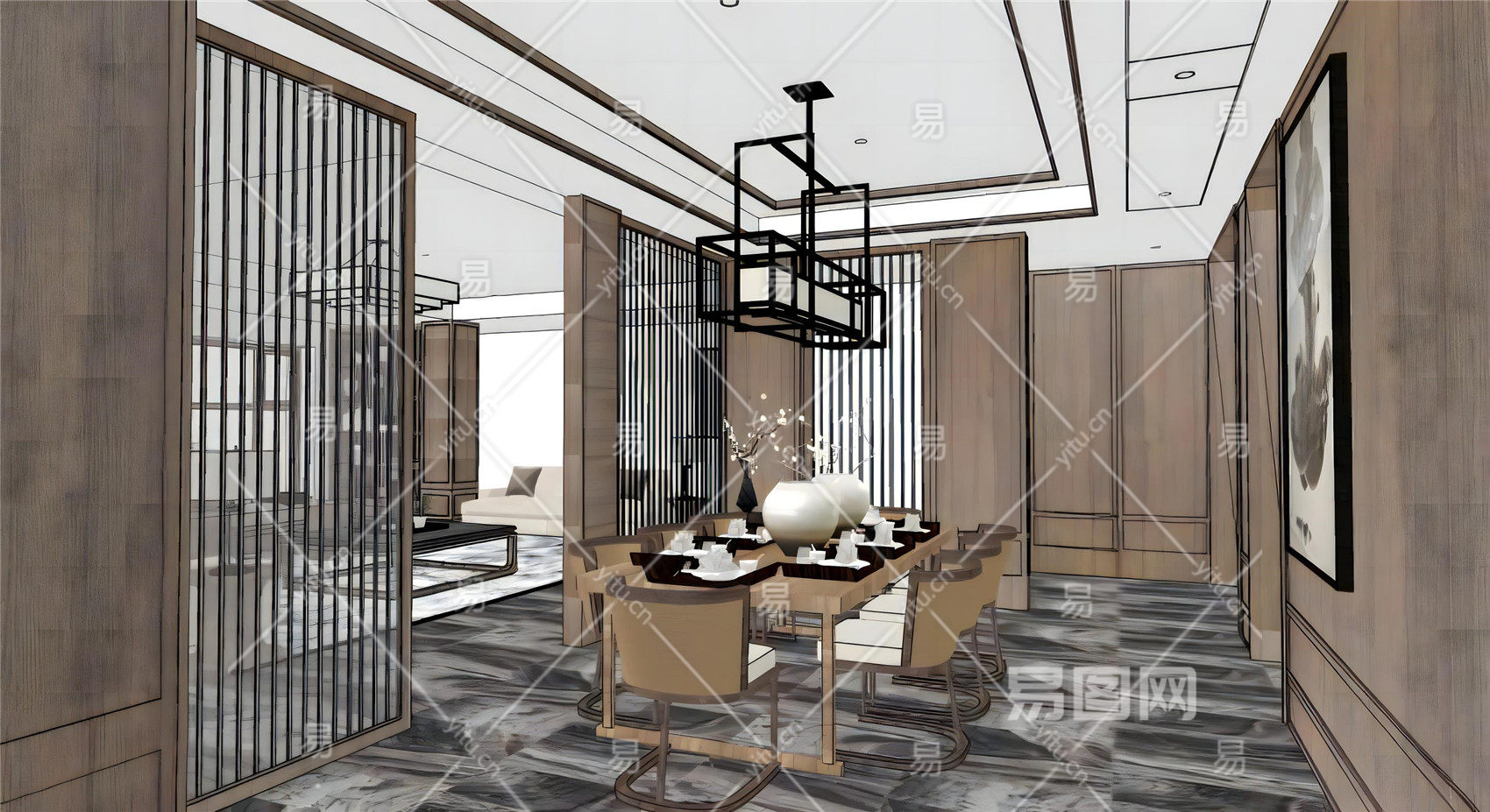 当前的位置:首页 > sketchup > sketchup模型 > 家装 > 客厅 > 新中式客餐厅沙发茶几组合