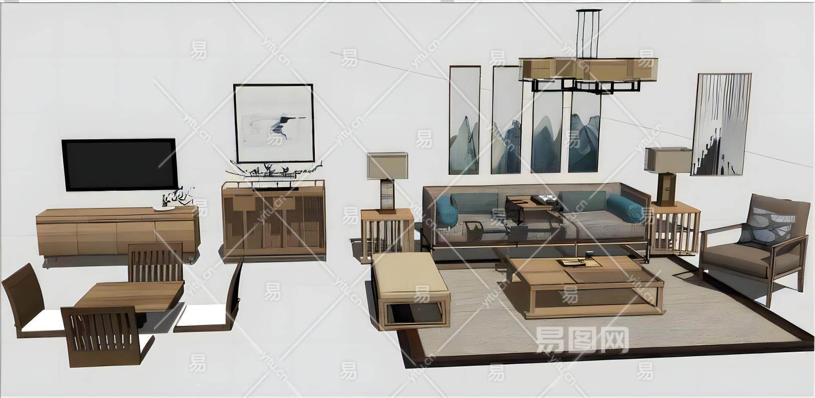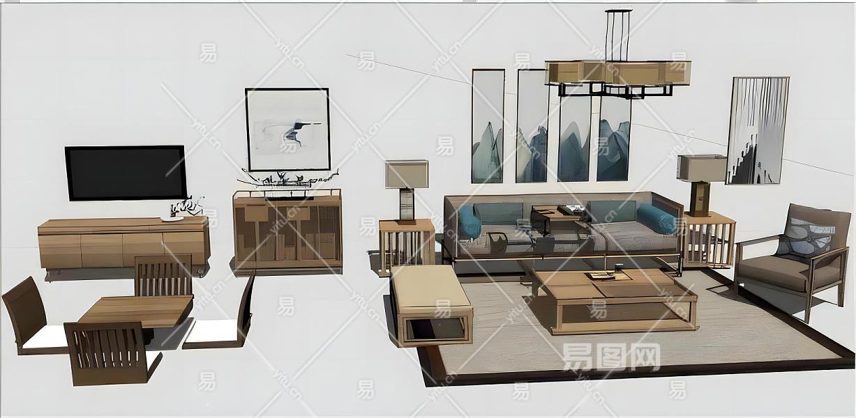 当前的位置:首页 > sketchup > sketchup模型 > 家装 > 客厅 > 新中式客餐厅沙发茶几组合