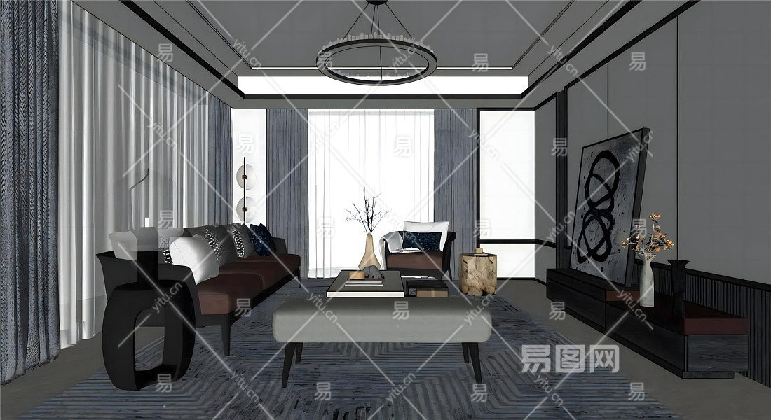 当前的位置:首页 > sketchup > sketchup模型 > 家装 > 客厅 > 新中式客餐厅沙发茶几组合